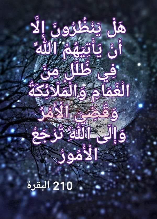 يحدِّثنا القرآن العظيم عما سيحدث يوم القيامة بتجلِّي الله تعالى للوجود تجلياً يجيء على كل ما فيه فيزول الوجود ويتلاشى ولا يبقى منه شيء. وهذا التجلِّي الإلهي للوجود هو ما بوسعنا أن نتبيَّن ذكره متوارياً من وراء كلمات الآيتين الكريمتين التاليتين: (هَلْ يَنْظُرُونَ إِلَّا أَنْ تَأْتِيَهُمُ الْمَلَائِكَةُ أَوْ يَأْتِيَ رَبُّكَ أَوْ يَأْتِيَ بَعْضُ آيَاتِ رَبِّكَ يَوْمَ يَأْتِي بَعْضُ آيَاتِ رَبِّكَ لَا يَنْفَعُ نَفْسًا إِيمَانُهَا لَمْ تَكُنْ آمَنَتْ مِنْ قَبْلُ أَوْ كَسَبَتْ فِي إِيمَانِهَا خَيْرًا قُلِ انْتَظِرُوا إِنَّا مُنْتَظِرُون) (158 الأنعام)، (هَلْ يَنْظُرُونَ إِلَّا أَنْ يَأْتِيَهُمُ اللَّهُ فِي ظُلَلٍ مِنَ الْغَمَامِ وَالْمَلَائِكَةُ وَقُضِيَ الْأَمْرُ وَإِلَى اللَّهِ تُرْجَعُ الْأُمُورُ) (210 البقرة).