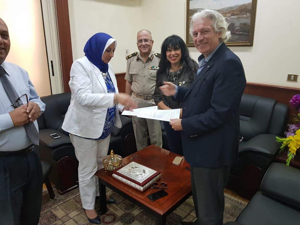 قام ممثل المنطقة الروتارية عبدالحميد العوا بتوقيع بروتوكول هام لخدمة أهالي سوهاج. ووقع البروتوكول ممثل المنطقة الروتارية مع رئيس لجنة القوافل الطبية إيمان سلام و رئيس هيئة التأمين الصحي، د.سهير عبد الحميد. وتضمن البروتوكول إجراء العديد من الجراحات في تخصص العيون وأقسام أخرى، وذلك بالمستشفيات التابعة لهيئة التأمين الصحي، على أن يبدأ تفعيل هذا البروتوكول في شهر أكتوبر الجاري بمحافظة سوهاج. وتبدأ أولا إجراء جراحات المياه البيضاء مجانا لأهالي سوهاج في مستشفي الهلال، وذلك بالتعاون مع بنك مصر وفريق رمد متخصص من معهد بحوث أمراض العيون بالجيزة.