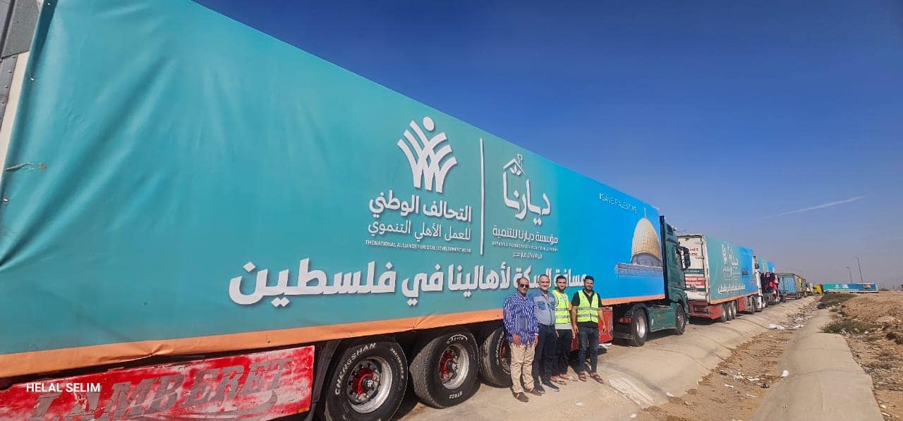 في إطار جهودها المستمرة في الدعم الإنساني والاغاثي ، قامت مؤسسة ديارنا للتنمية بإرسال ١٣ شاحنة مساعدات واغاثة إلي قطاع غزة علي ثلاث قوافل متتالية بالتعاون مع التحالف الوطني للعمل الأهلي التنموي والهلال الأحمر المصري، وتم إرسال شاحنات تضمنت مواد غذائية ومعلبات سهلة الطهي وشاحنات دقيق وأيضا شاحانات مياه وبطاطين وألحفة ودفايات وملابس جديدة ومستلزمات طبية ونسائية وألبان أطفال وكراسي متحركة وأدوات اسعافات أولية باجمالي ٢٨٥طن مساعدات وتم تسلميها عبر ميناء رفح البري إلي الهلال الأحمر الفلسطيني والذي بدوره يقوم بتوزيعها على الأهالي، ضمن خطة ومجهودات الدولة المصرية لدعم أهالينا في قطاع غزة، ومازال الدعم مستمر ومتواصل في قوافل أخري قادمة.