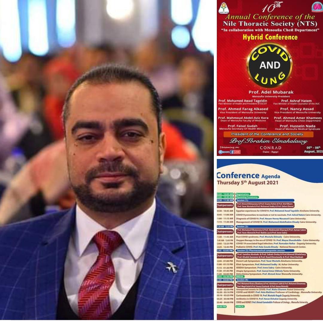 تعقد جمعية النيل للأمراض الصدرية مؤتمرها السنوي العاشر غدا الخميس بالتعاون مع قسم الأمراض الصدرية بكلية الطب جامعة المنوفية تحت عن عنوان COVID and LUNG «ڤيروس كورونا المستجد وتأثيره على الرئة » تحت رعاية الدكتور عادل مبارك رئيس جامعة المنوفية، والدكتور محمد عوض تاج الدين وزير الصحة الأسبق والدكتور أشرف حاتم وزير الصحة الأسبق وعضو مجلس النواب والدكتور أحمد فرج القاصد نائب رئيس جامعة المنوفية للدراسات العليا والبحوث والدكتور نانسى أسعد نائب رئيس جامعة المنوفية لشئون التعليم والطلاب والدكتور محمود عبد العزيز قورة عميد كلية كلية الطب ، والدكتور فيصل جودة وكيل وزارة الصحة بالمنوفية والدكتور حسين ندا نقيب أطباء المنوفية والدكتور أحمد عامر خميس رئيس قسم الأمراض الصدرية و برئاسة الدكتور إبراهيم المحلاوي أستاذ الأمراض الصدرية ورئيس جمعية النيل ، وبحضور عدد كبير من أطباء.الامراض الصدرية والتخصصات المختلفة