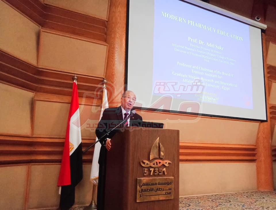 وألقى "صقر" محاضرة بعنوان "التعليم الصيدلي في القرن الحادي والعشرون"، وتم مناقشة أسباب نجاح الدكتور الصيدلي في أمريكا، وهو برنامج Pharm D ، وهي درجة تخصصية في الصيدلة، تتيح التطوير وتخريج كفاءات وطنية عالية في مجال الصيدلة.